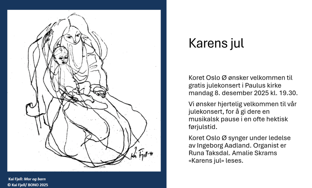 Vår tradisjonelle julekonsert blir avholdt i Paulus kirke på Grünerløkka 8. desember kl. 19.30.